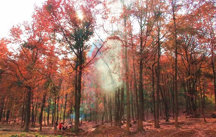 这里的枫叶,赤诚如火,将晚秋里寂寞的大山装点得绚烂而多彩。仿佛想告知世人要开心快乐,仿佛想告诉周围的花花草草,人们都是为她而来的!
