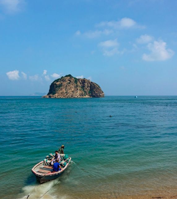 而棒棰岛是不能登岛的,但可以坐快艇绕岛转一圈,越靠近岛的地方,海水越蓝,呈现渐变色。