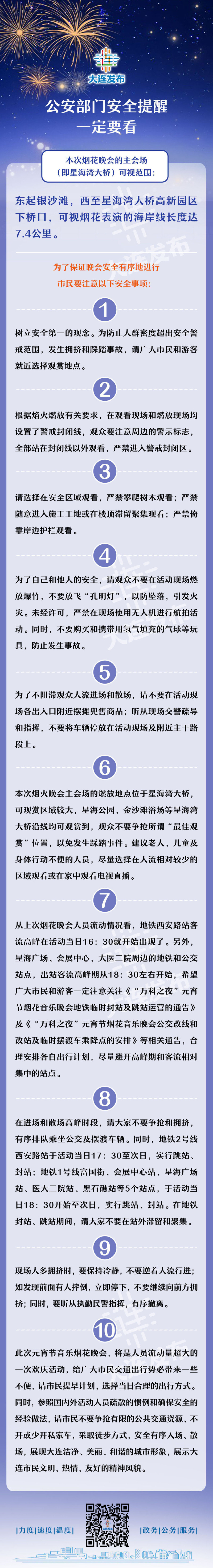 大连市交通运输局将做好运力调配和使用,确保为烟花晚会提供高质量的交通运输保障服务。