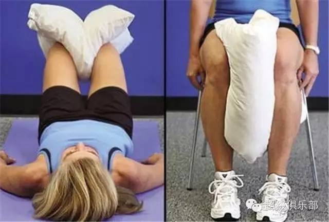 仰卧,双膝弯曲。放置一个枕头在两膝之间。用力夹紧双膝,把枕头挤扁。保持 5 秒钟,放松,重复做 10 次。你也可以坐着做这个练习。