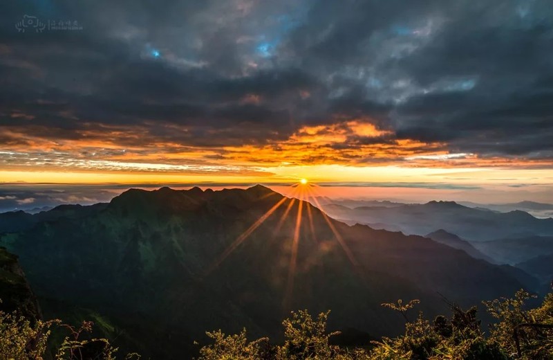 每当日出日落之时,便是光头山一天当中最壮观的时候。霞光万道,挥洒期间,横亘在火红朝霞或晚霞之间的山峰被徐徐浸染,壮观无比。
