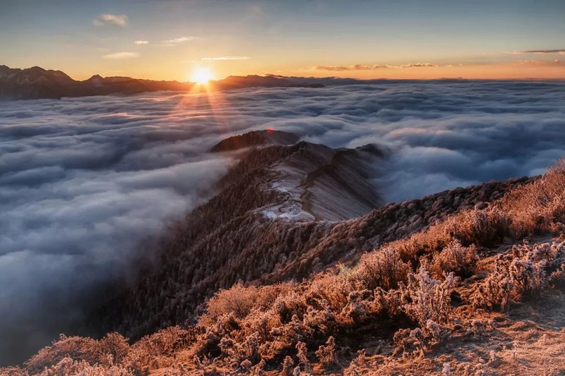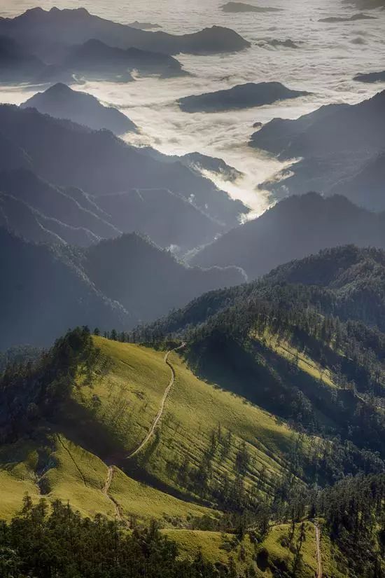 这里的云海漫过天野,就像是天幕下落,美不胜收。