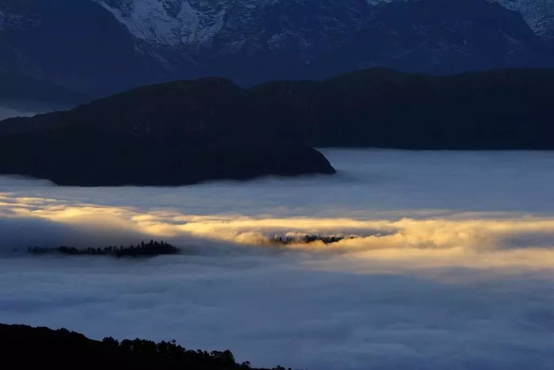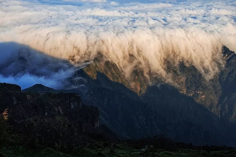 这里的云没有则矣,一旦出现便是层层叠叠,亦幻亦实,如同汪洋大海般的波澜壮阔。