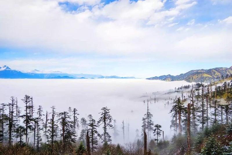 跟牛背山相比,光头山离贡嘎的距离更近,这也就意味着在这里你可以看到更壮观的云瀑。