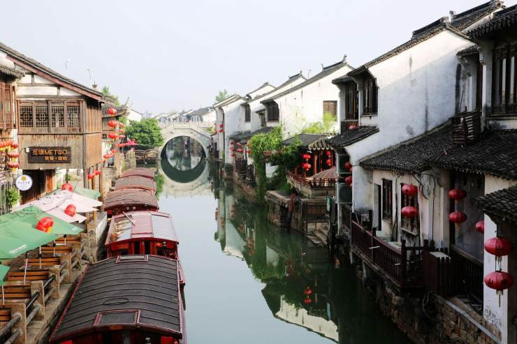 晨昏时,平江路才是昔日老姑苏,合欢淡淡开在老墙旁,街坊老姐妹水边聊天,种在盆子里的小菜伸展胳膊,打扫干净的小院落,老旧的竹椅上放着整洁的坐垫,等着沏好清茶的主人落座。