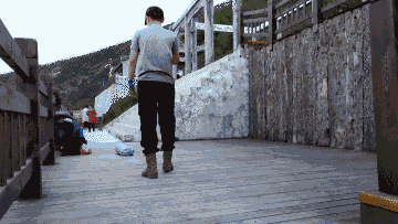 观景台前留影一张却被方便面抢了镜