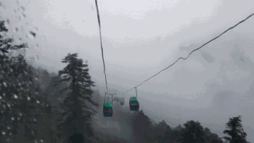 在等待索道的时候雨已经下最大了