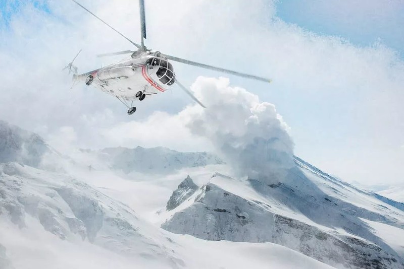 在勘察加,有一些时不时就会冒出岩浆和火山灰的火山无法登顶。想要观察这些火山,只能乘坐直升机在火山口盘旋。