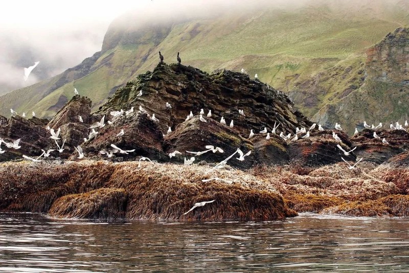 除了棕熊,勘察加的海洋生命同样丰富:海狮、海豹、⻁鲸、海豚、凤头海鹦、崖海鸦、鸬鹚……水上海鸟翱翔、海中巨物游弋,堪称现实版《山海经》。
