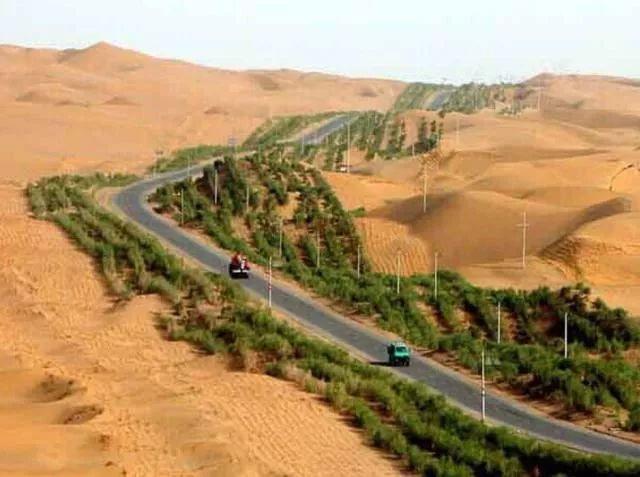 但是在这令人生畏的大沙漠中,却有一条非常独特的贯穿大漠南北的公路--- 塔里 木沙漠公路。