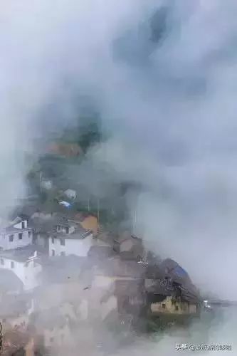 村庄海拔610米晨间云蒸雾绕,