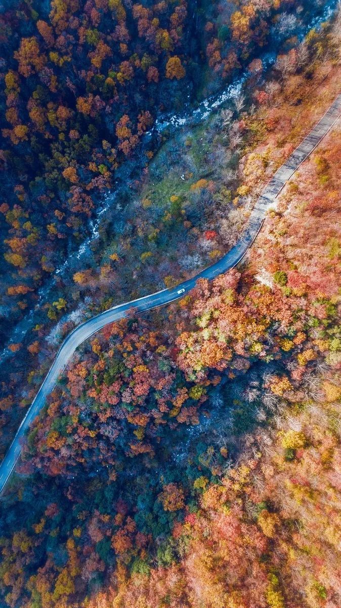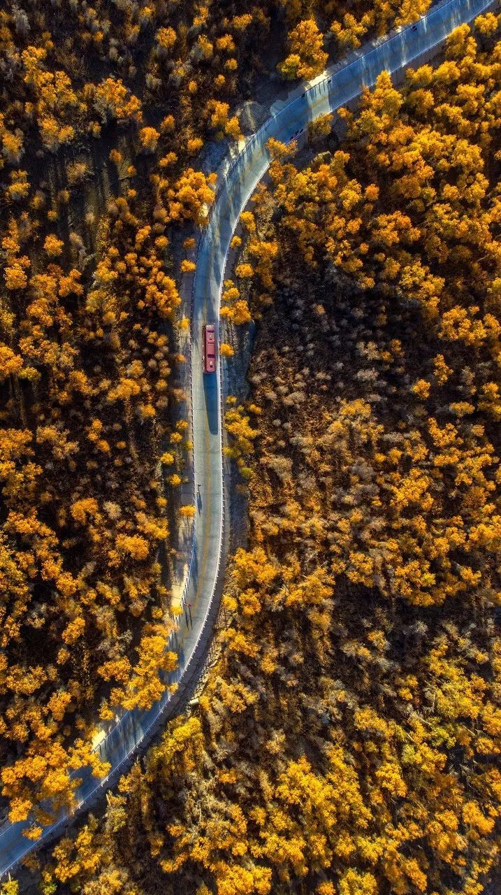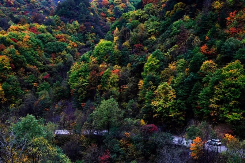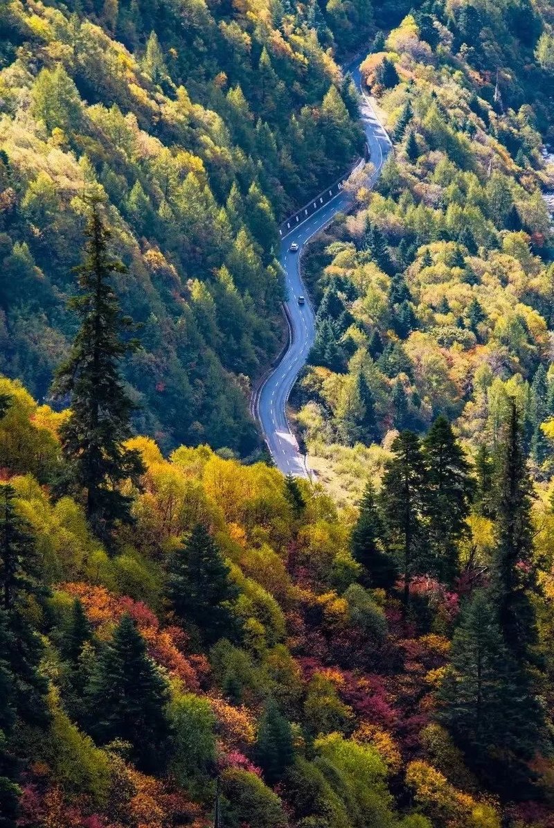 自驾在这片彩林中,无数色彩呼啸而过,犹如漫步云锦之上,何不爽哉!