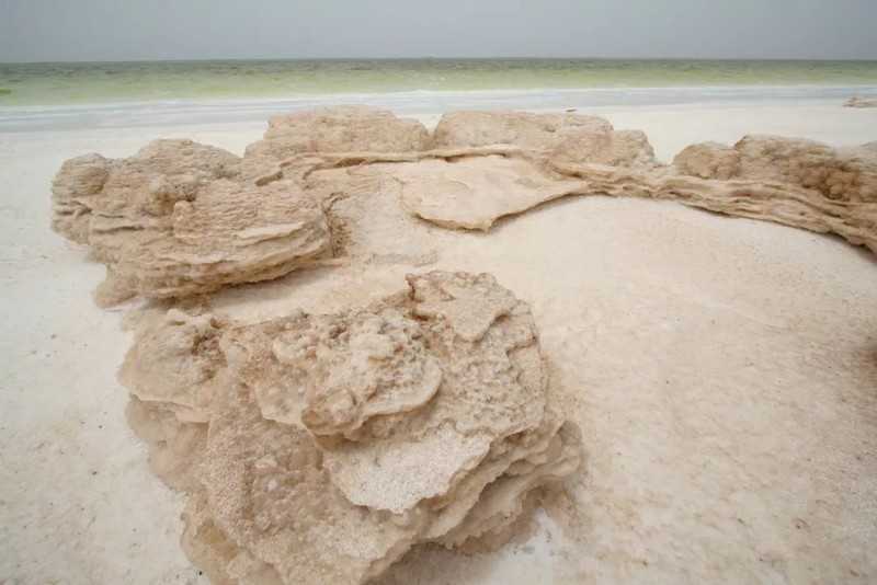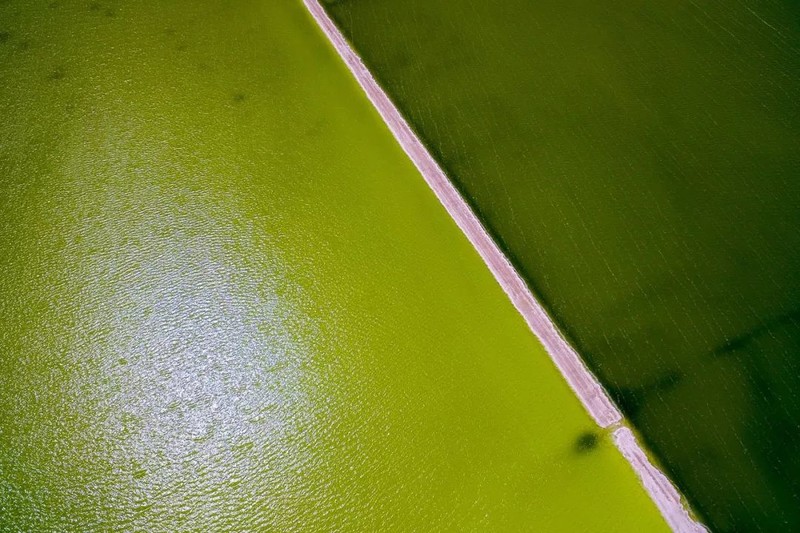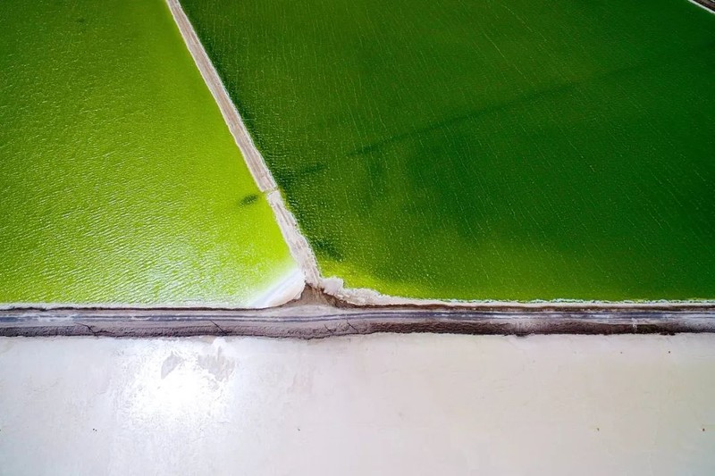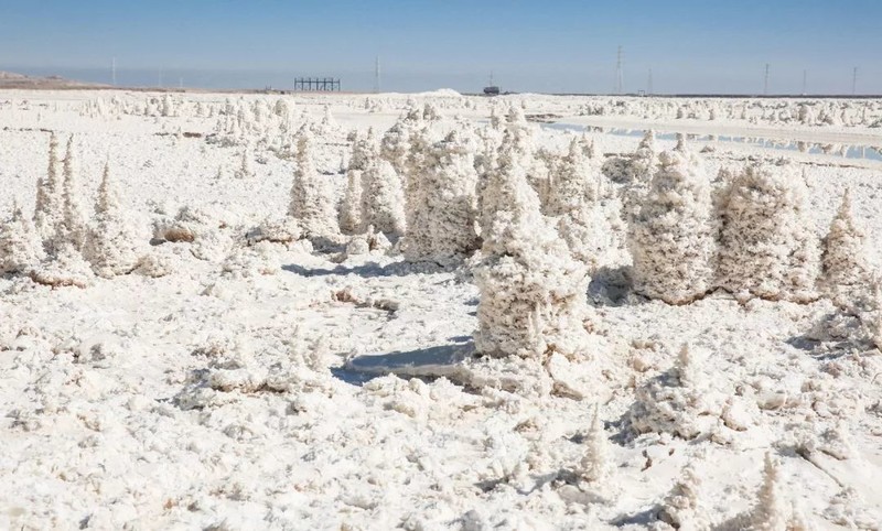由于湖中盐度极高,所以一切绿色植物都不得已生长,但却孕育出了景美的盐花。