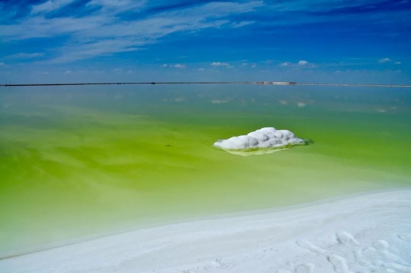 湖水中由于含有特殊的矿物元素,使这里变的如翡翠一般碧绿,和察尔汗盐湖相比,又是另一番滋味,错过就未免过于遗憾了。