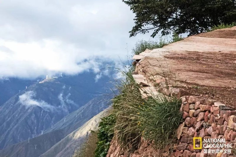 停下来换胎时看到这样的景色,一条石头堆砌的乡村小路盘旋着,远处的高山白云缭绕,天空也渐渐放晴——