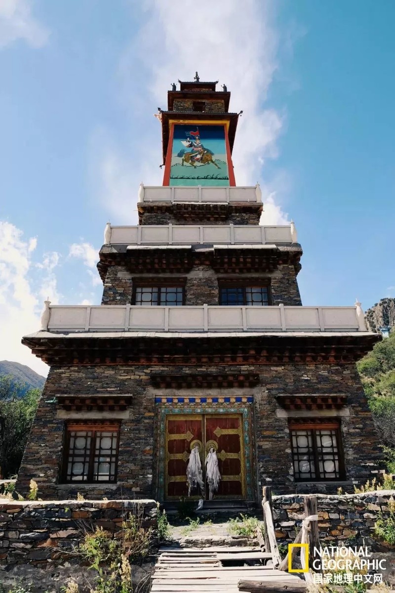从八一镇往拉萨方向的路上,一栋无人的藏式建筑。