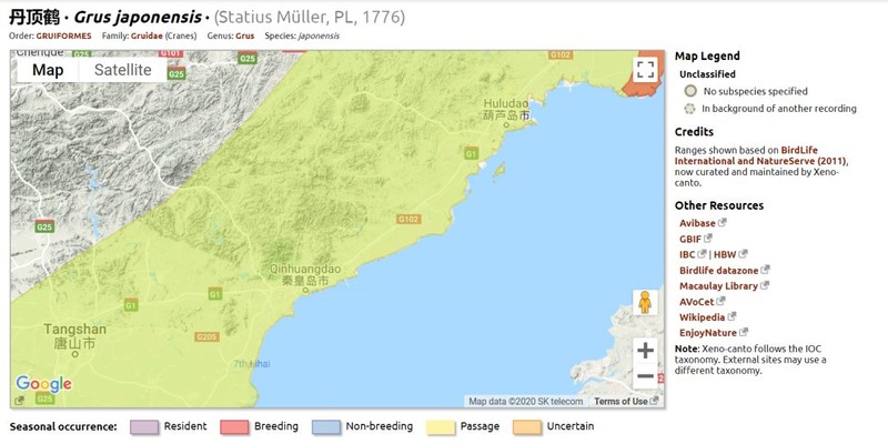 丹顶鹤西部野生种群的迁徙路径。丨xeno-canto.org