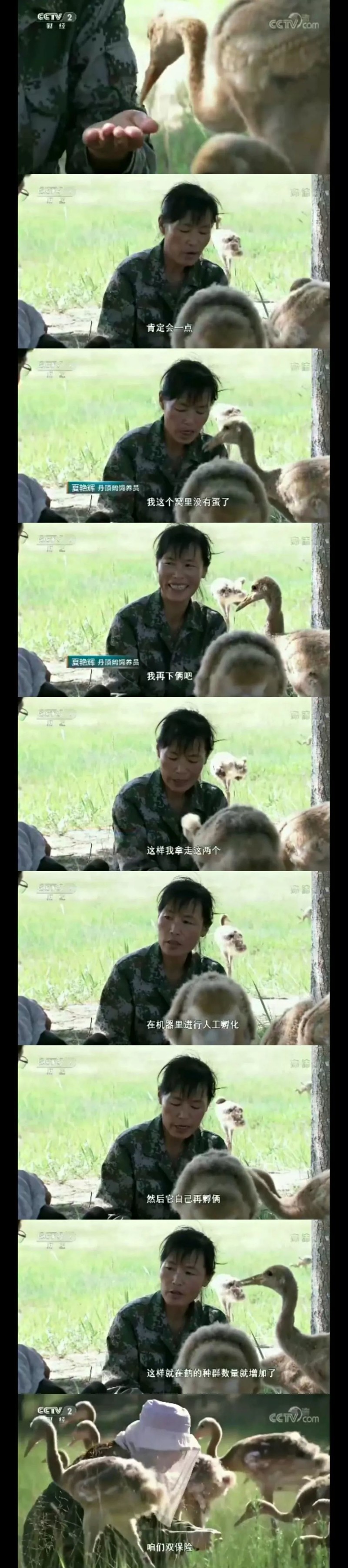 饲养员:那肯定会一点儿,然后它一看,我这个窝里没有蛋了,我再下俩吧,又下两个。这样我拿走这两个,在机器里进行人工孵化,然后它自己再孵俩,这样鹤的种群数量就增加了。咱们双保险,要是让它自己孵,就顶多孵俩。