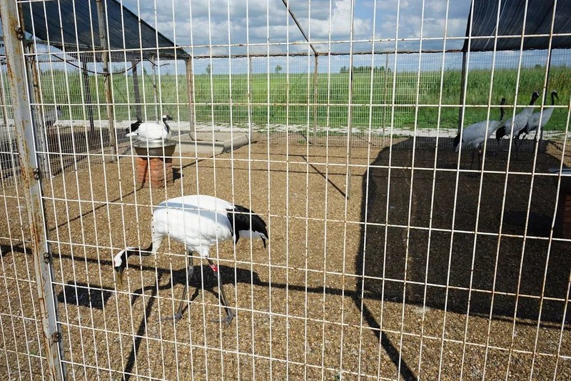 公开资料显示,扎龙保护区内圈养的丹顶鹤有400多只。从游客在当地拍摄的照片,以及扎龙保护区自己发布的信息来看,保护区会把丹顶鹤密集地圈养在笼子里,每天进行 “野化训飞表演”两次,每次半小时, 供游客近距离拍照。