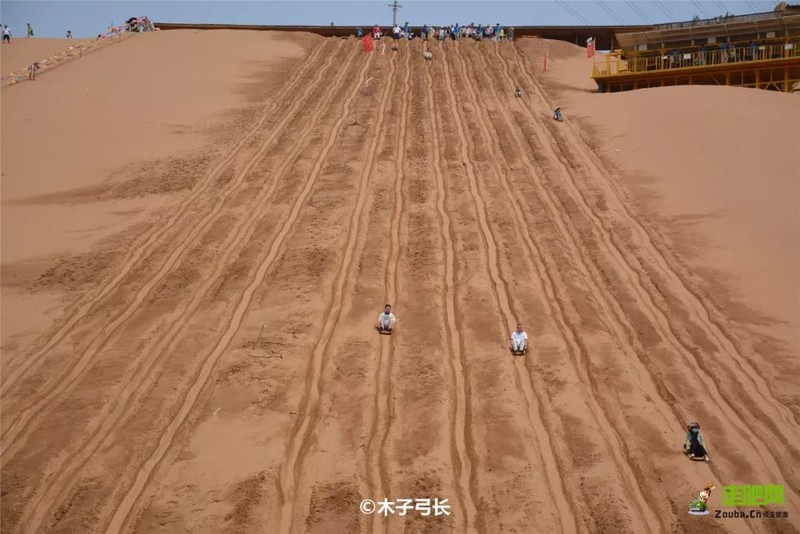 游人从高约百米的沙坡头的坡顶 往下滑,由于特殊的地理环境和地质结构,滑沙时座下会发出一种奇特的响声,人钟巨鼓,沉闷浑厚,称之为“金沙鸣钟”,大人小孩都喜欢玩儿。