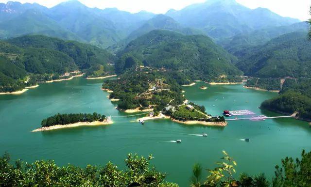 仙宫湖水山相连,点缀两岸的村庄、田野和山林,好似一幅色彩斑斓的山水画。