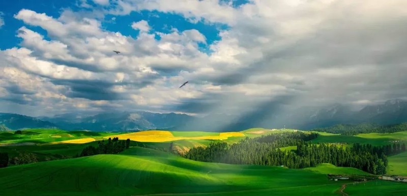 观赏地:新疆伊犁河谷的霍城、伊宁、新源、尼勒克等地