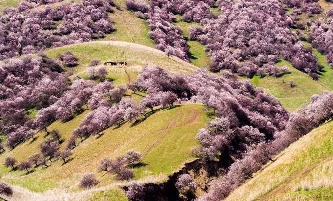 这片中世纪遗留下来的三万多亩野杏林,位于伊犁哈萨克自治州新源县吐尔根乡,离218国道不远。
