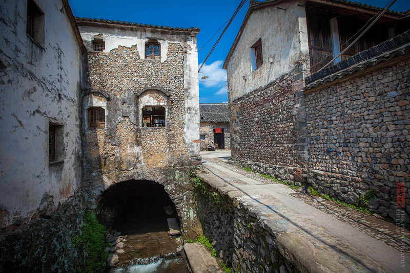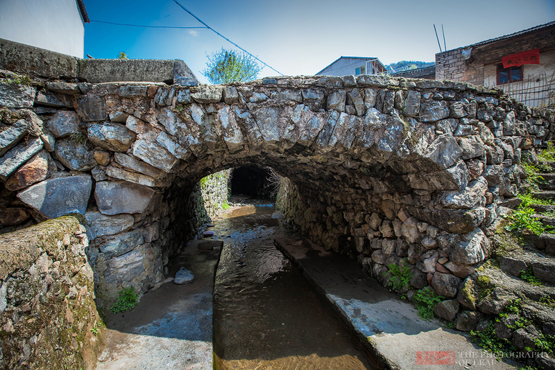 村口有一座石拱桥,用石块砌成,桥下溪水潺潺。沿桥边石板路而下,桥下是另有一番天地。桥洞宽约4米、高3米,向前望去未见尽头,这就是嵩溪村排水系统的出口。