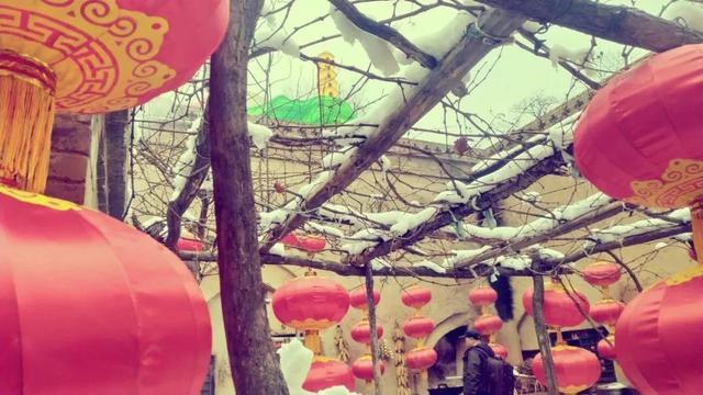 院子里早已张灯结彩喜迎春节。