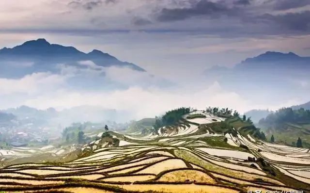 位于江西婺源县境内,也许你更熟悉婺源的油菜花,但不要记了这里的江岭梯田一样美丽,在海拔千米的高山上;梯田如链似带,层层叠叠,高低错落,壮丽雄奇;水面映着蓝天和古树;梯田下面,山窝里藏着一小撮粉墙黛瓦分外温柔可亲。