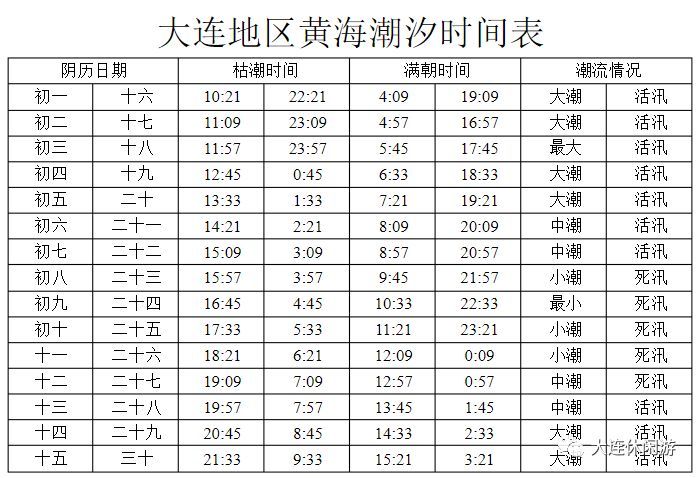 付家庄,星海,燕窝岭,大连湾等海域请参考黄海潮汐表。