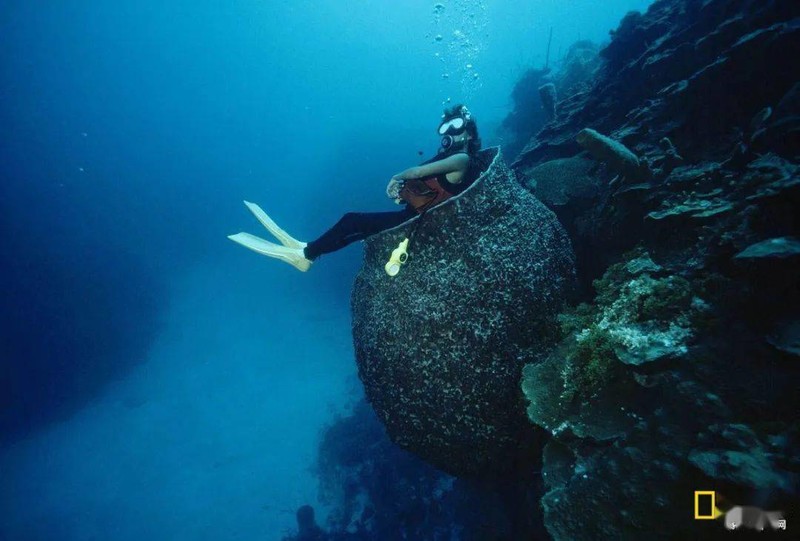 海螺礁上最大的海绵大约有一个油桶大小,