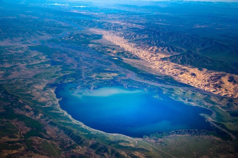 ▲ 从高空俯瞰黄河源的岗纳格玛错。图/视觉中国