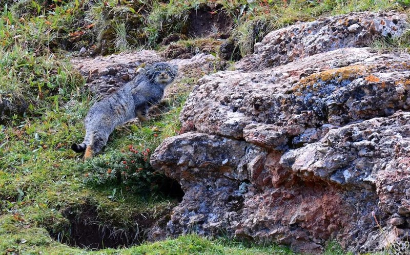 “不高兴”——兔狲似乎刚从洞中出发,去寻找属于自己的晚餐。