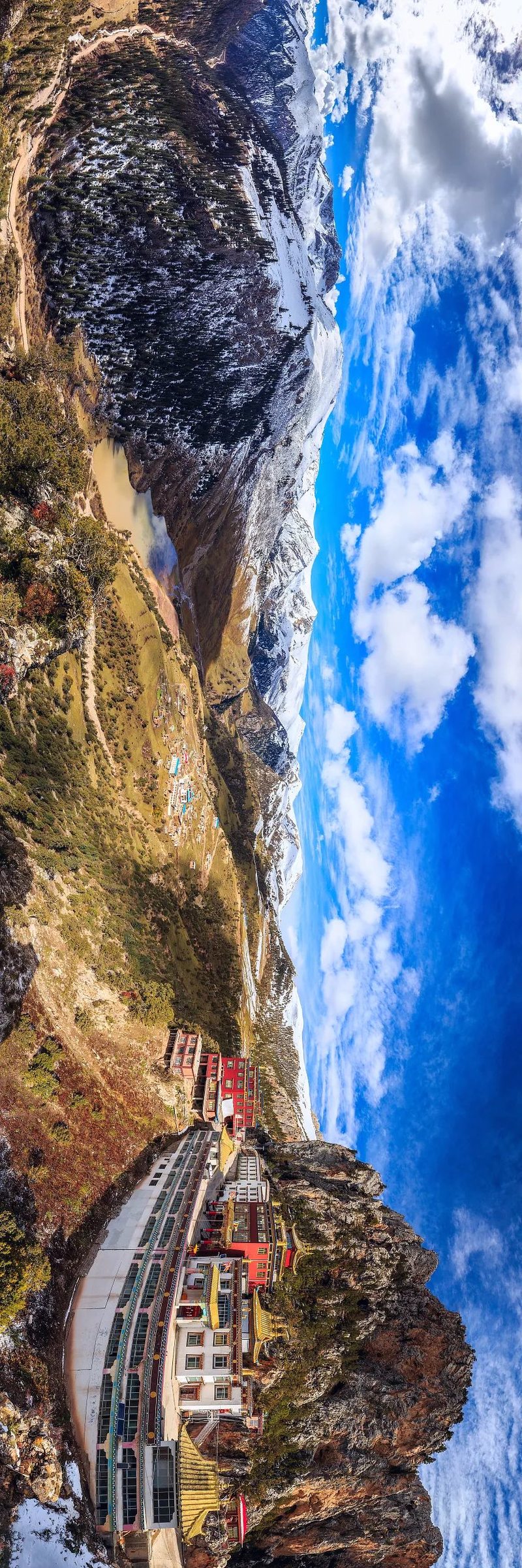 ▲ 尕尔寺,位于青海省玉树州白扎乡,是一座“镶嵌”在悬崖上的藏传佛教寺庙,海拔3700米。图/视觉中国