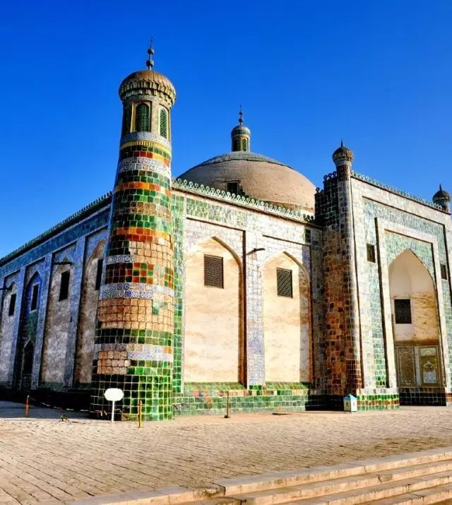 这座香妃墓是一个典型的伊斯兰建筑,因香妃生前信奉伊斯兰教,当地的人民便在这里造了一座伊斯兰风格的墓,而香妃的真身据说是葬在河北。