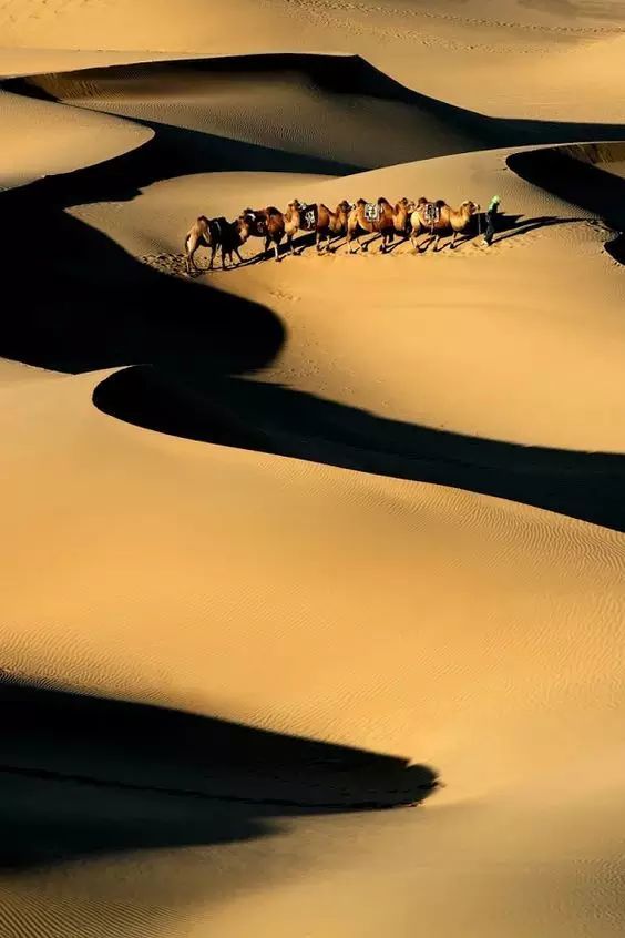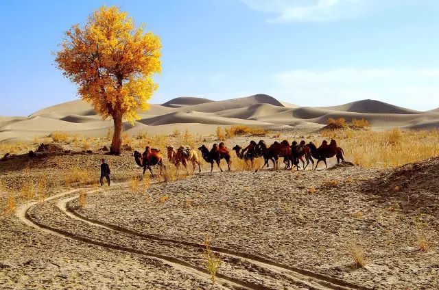 若是运气好,还能见到塔克拉玛干沙漠的雪景。纯白色的雪映衬着金色的胡杨林,加上优雅的驼队,更是一场如电影般梦幻的景象。