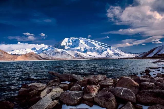 位于卡拉库里湖旁边的慕士塔格峰,是帕米尔高原上最迷人的景色。红褐色的山川覆盖着皑皑白雪,雄踞昆仑之首。