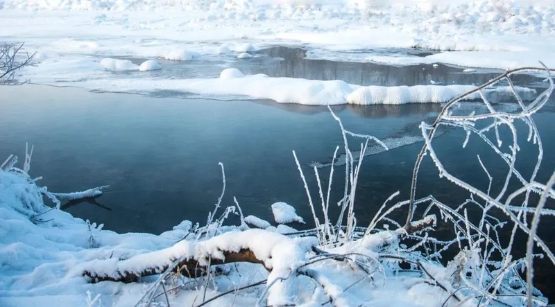 ▲ 不冻河不结冰是因为地表有大量地热存在。尽管河畔树枝挂满冰霜,河面仍不结冻,反而雾气蒸腾。图/图虫·创意