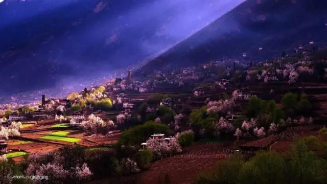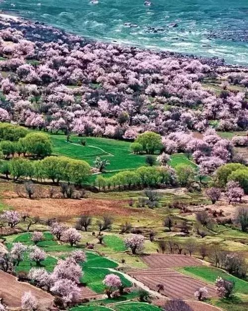 它是林芝,每年春分前后,整个林芝都沐浴在一片春光里,院子里、山坡上、田野间都开满了桃花!不似江南的桃花那么娇气,林芝的桃花更有野性,格外的美丽烂漫!