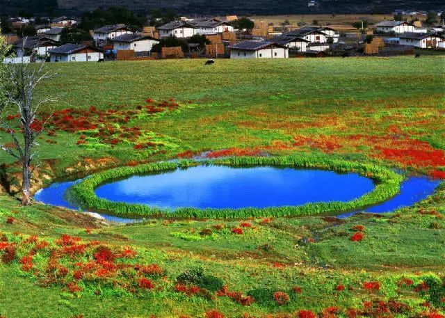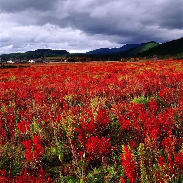 香格里拉最令人惊艳的景色是秋天的狼毒花。一簇簇狼毒花,红得耀眼,像罂粟娜般美丽。狼毒花有毒,是香格里拉特有的植物,牲口误吃了会很快死去。