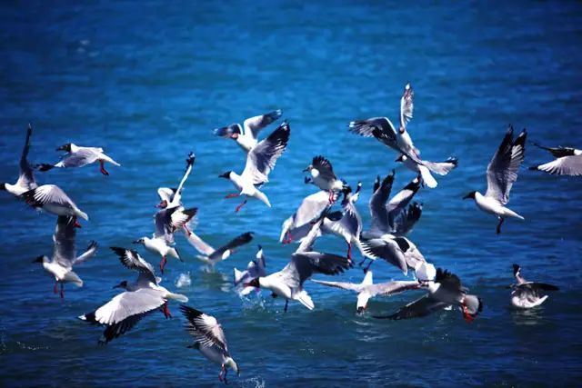它蓝似海洋,可比海洋要蓝得纯正;它蓝似天空,可比天空要蓝得深沉。青海湖的蓝,蓝得净,蓝得深湛,也蓝得温柔恬雅,那蓝锦缎似的湖面上,起伏着一层微微的涟漪。像是小姑娘那水灵灵、蓝晶晶的眸子。