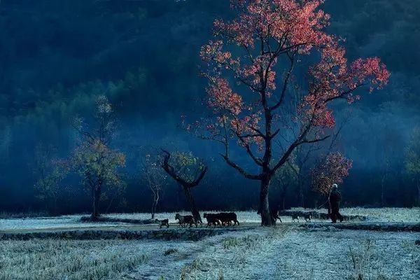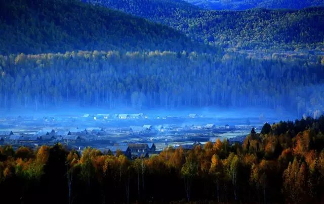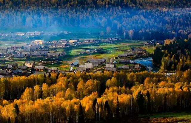 一座座小木屋散落在秋色醉人的山林里,朝霞晨雾、夕阳炊烟,这就是世外桃源吧!