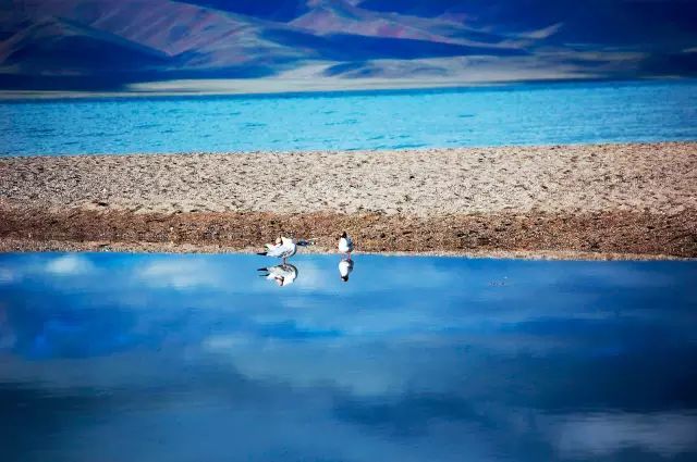纳木错是蓝色的,淡蓝、浅蓝、灰蓝、宝蓝、深蓝,深深浅浅的蓝,清澈又迷人。