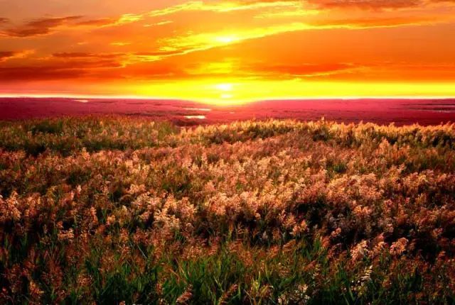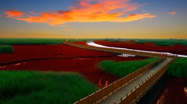 红海滩是大自然孕育的一道奇观。海的涤荡与滩的积沉,是盘锦红海滩得以存在的前提;碱的渗透与盐的浸润,是红海滩得以红似朝霞的条件。