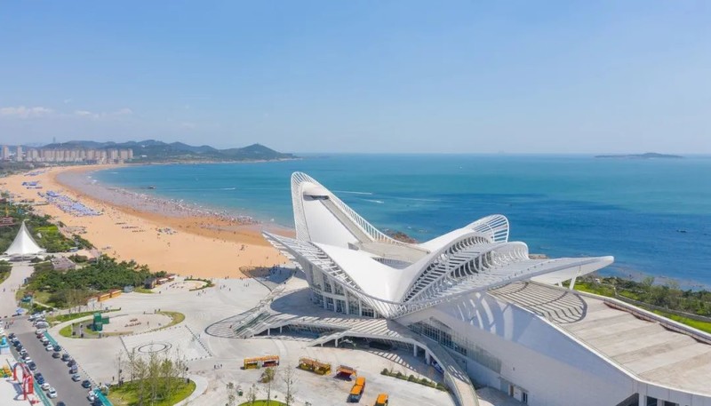 凤凰之声大剧院造型如同一只涅槃重生的凤凰一般,坐落在青岛西海岸新区。
