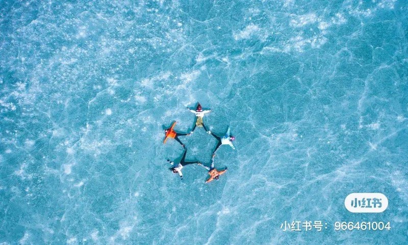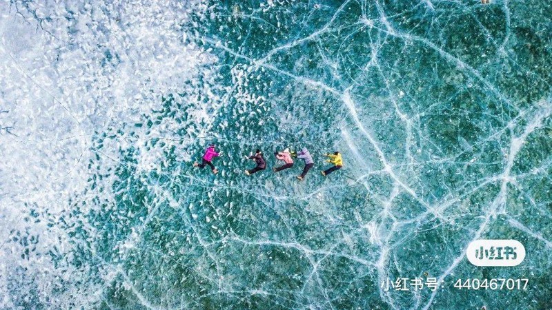 冰面十分结实,一片湖能拍摄出3种颜色,真的如梦似幻。而且是无人机、手机直出就可以,美到完全不需要修图,所见即是所得。