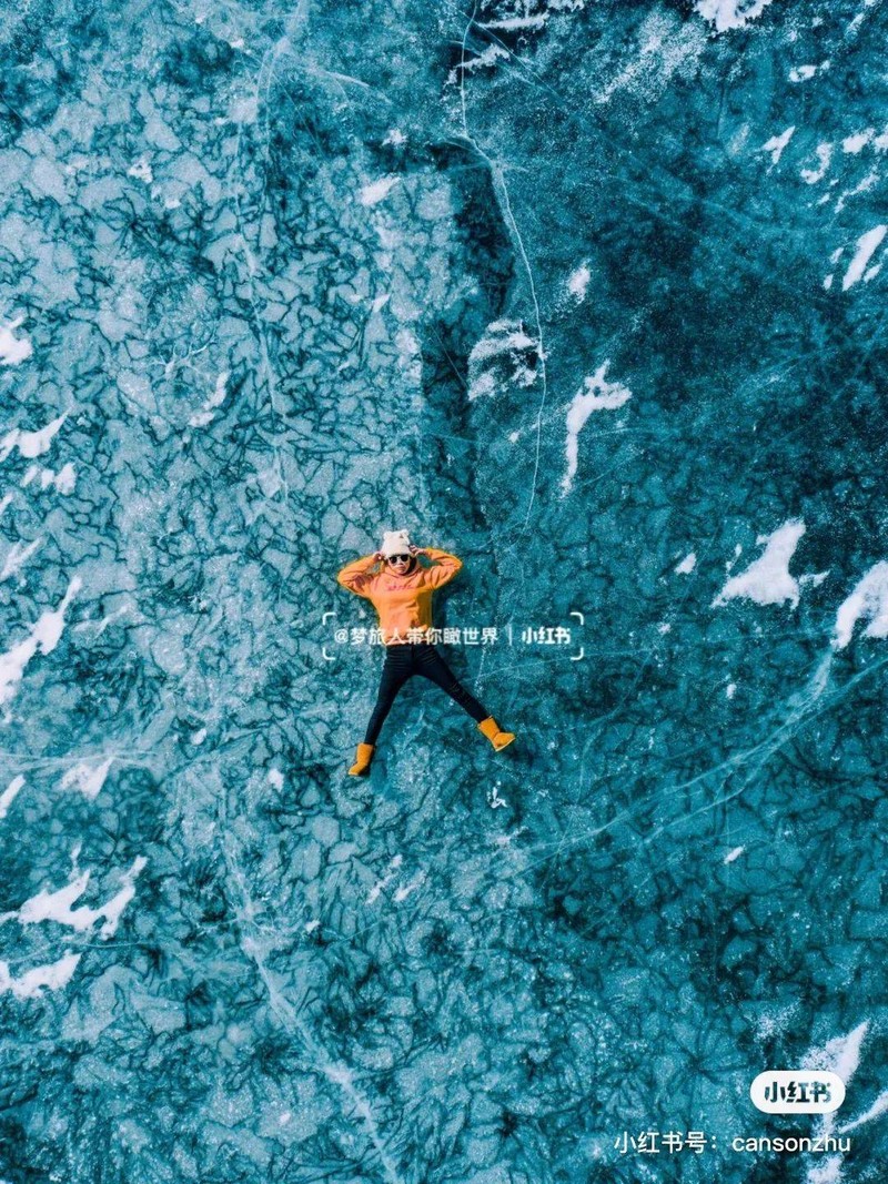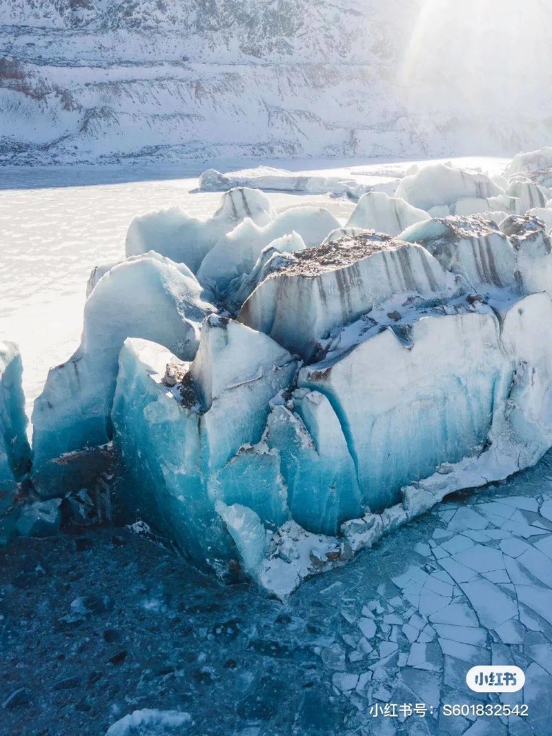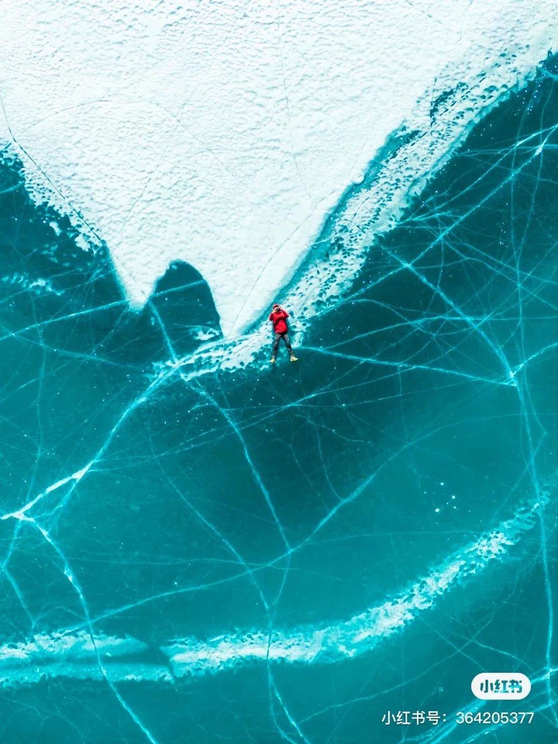 拍照的时候记得顺着太阳光,让太阳抛在身后,高角度拍摄,会让画面更广阔,冰面显得更蓝,这时候无人机是最好的选择啦。