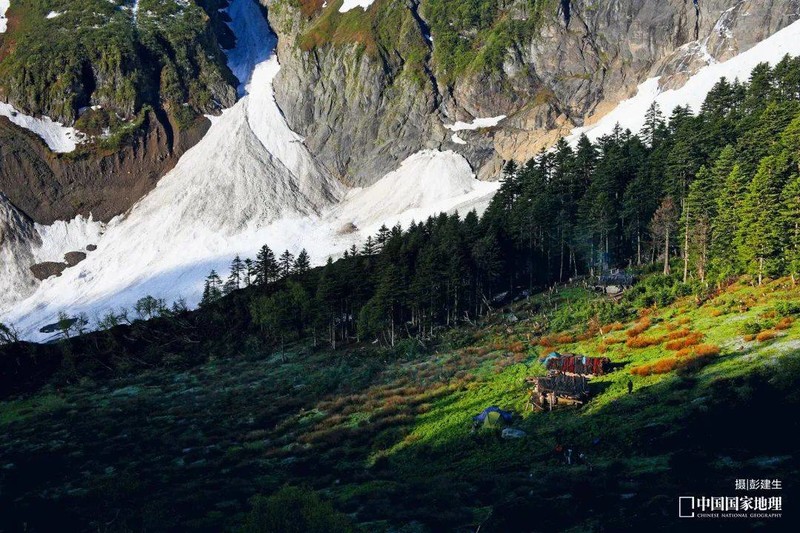 梅里雪山的冰川末端伸入森林 摄影/彭建生