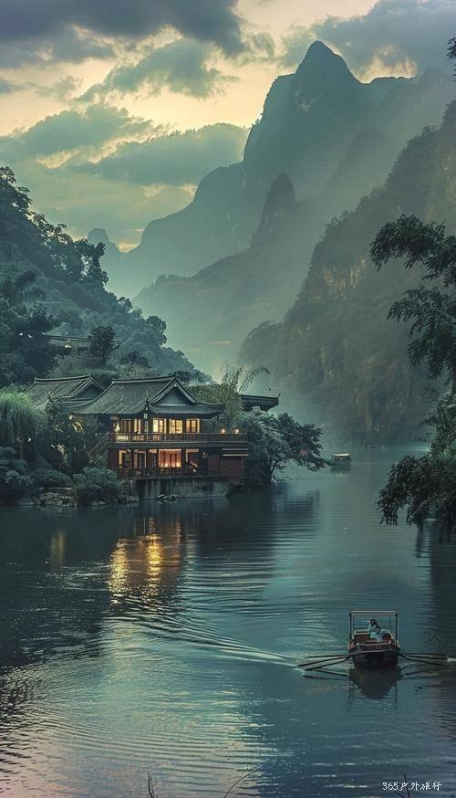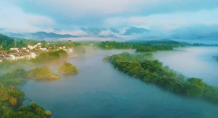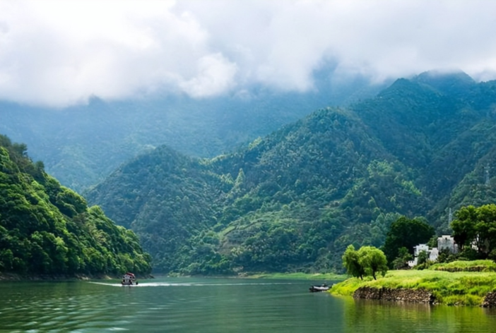 "富春江如碧绿绸带蜿蜒102公里,串联起严子陵钓台、芦茨村等诗画美景,黄公望在此绘就《富春山居图》,一日尽览山水人文。"